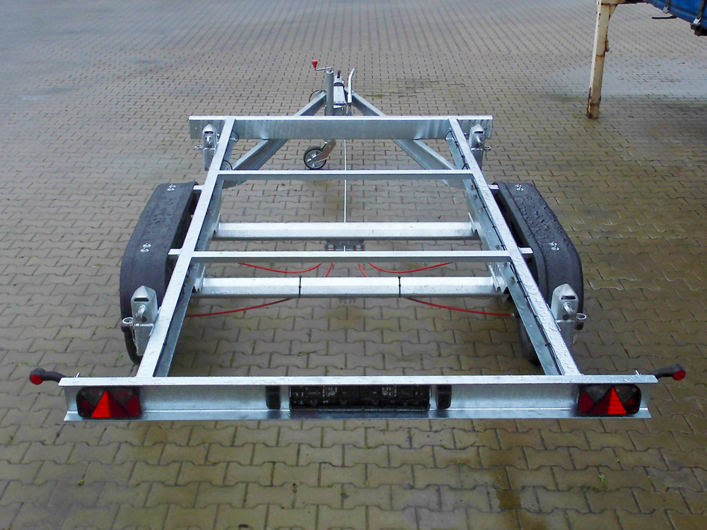 Im Bereich Fahrzeugbau haben wir uns auf den Aufbau von Wechselbrückensystemen spezialisiert. Hierbei ist der niedrige Hilfsrahmen von 60 mm mit hydraulischer Steuerung von großer Bedeutung. Zudem bieten wir Wechselbrückenträgersysteme für Überbreite von 3 Meter an. Zudem fertigen wir PKW-Anhänger nach Kunden-Sonderwünschen.