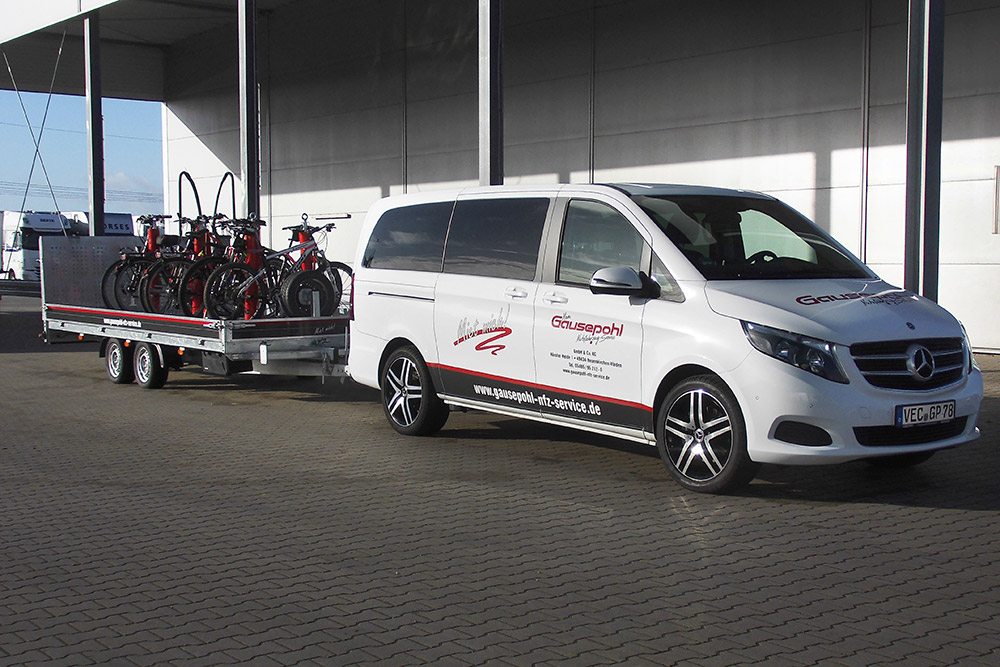 Passend zum Anhänger bieten wir Ihnen auf Wunsch ein Zugfahrzeug, wie z. B. MB V-Klasse oder MB Sprinter an. Wir freuen uns auf Ihre Anfrage!